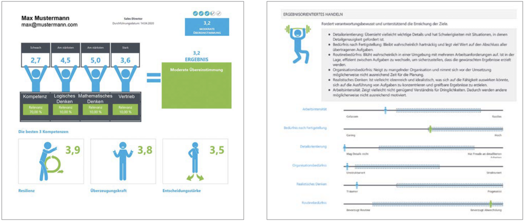 Kompetenz ist die Summe aller Fähigkeiten, Fertigkeiten, Kenntnisse, Persönlichkeits- und Verhaltensmerkmale, die Grundlage sind, um eine Funktion in einem Unternehmen erfolgreich und effektiv so zu erfüllen, dass damit das Erreichen strategischer Unternehmensziele unterstützt wird. Gemessen werden Persönlichkeitseigenschaften in den Bereichen Denk-, Arbeits- und Beziehungsstil, über 40 Kompetenzen und kognitive Fähigkeiten.